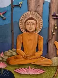 This artwork is a serene tribute to Lord Mahavira, the great spiritual teacher and 24th Tirthankara of Jainism, who embodied peace, compassion, and enlightenment. Depicted in deep meditation under the shelter of tall forest trees, Mahavira radiates calmness and inner strength. His figure, carved in warm wooden tones with fine detailing, exudes an aura of harmony that invites quiet reflection.