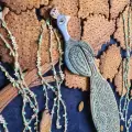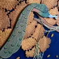 The vibrant palette of deep blue, earthy browns, and soothing greens creates a stunning contrast that highlights the regal poise of the peacocks. Each feather is carefully carved and textured, radiating delicate craftsmanship that reflects the bird’s natural splendor. The blooming lotuses at the base bring in purity and serenity, grounding the composition in spiritual symbolism.