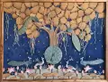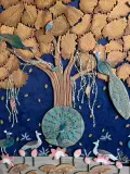 This mesmerizing artwork, Mayur Leela, captures the eternal elegance of peacocks dancing under the shade of a blossoming tree. A symbol of grace, love, and divine beauty, the scene celebrates the harmony of nature, where peacocks—adorned in intricate detailing—gather amidst blooming lotuses and cascading floral vines.